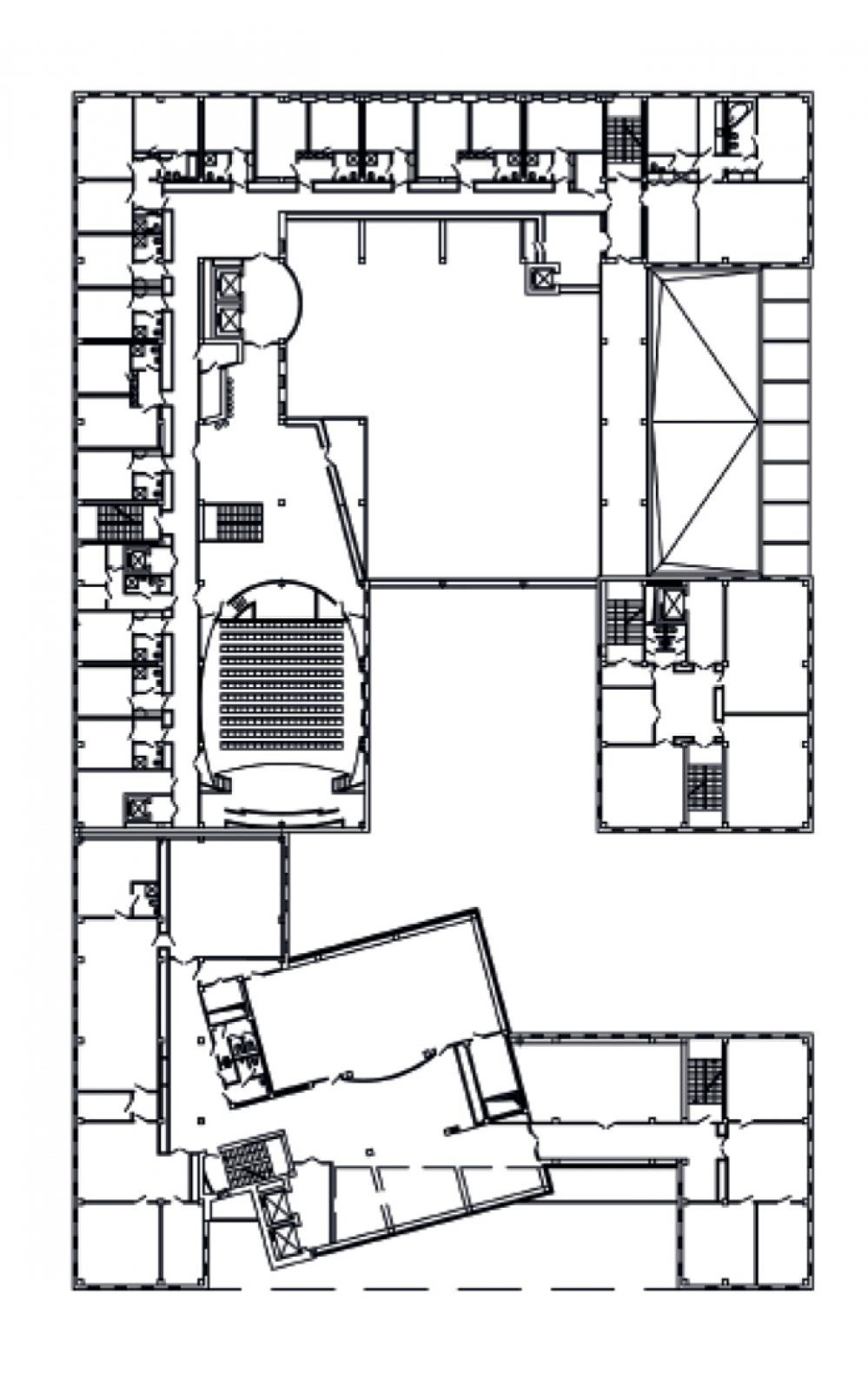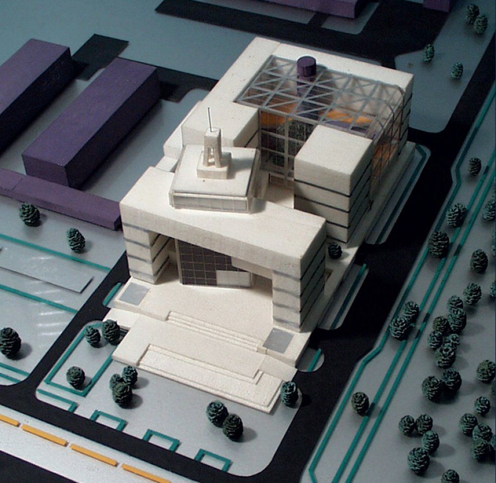 The volume of the building is formed by blocks of different functional use. The emphasis of the composition is the 11-storeyed tower, supported by a strong U-shaped volume, in which the bank is located. The hotel and office blocks are designed in such a way that they create the interior space, which connects all the functional blocks and creates the recreational zone.