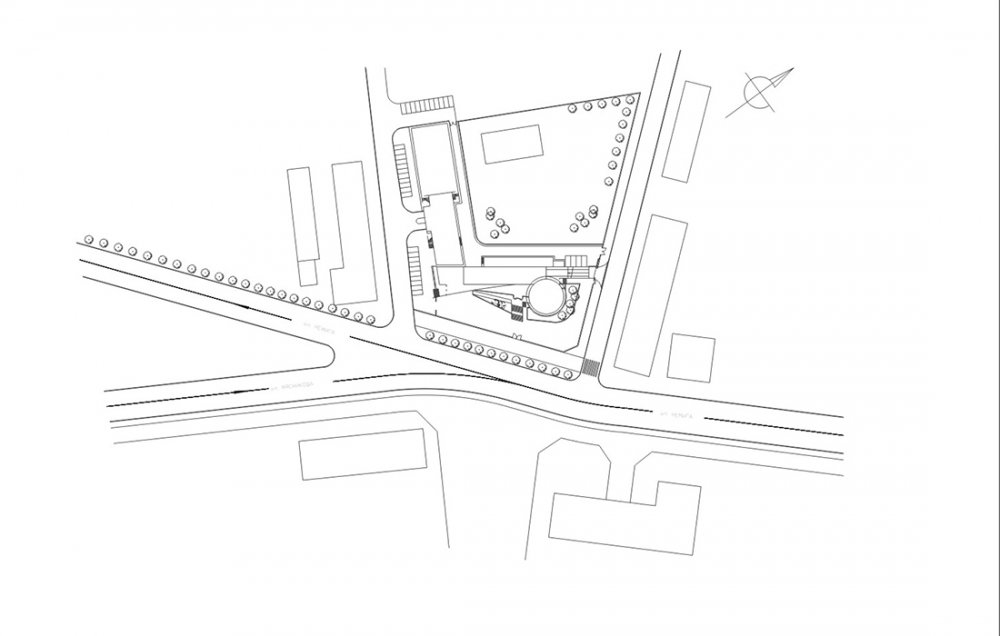• The administrative building of LUKOIL-Belarus is one of the creative studio’s first landmark projects. It successfully  combines the functions of an office building with a multifunctional public-service complex, a wellness center, and a  restaurant. The architecture expresses the directional dynamics of the intersecting streets and visually reflects the  client’s business profile.