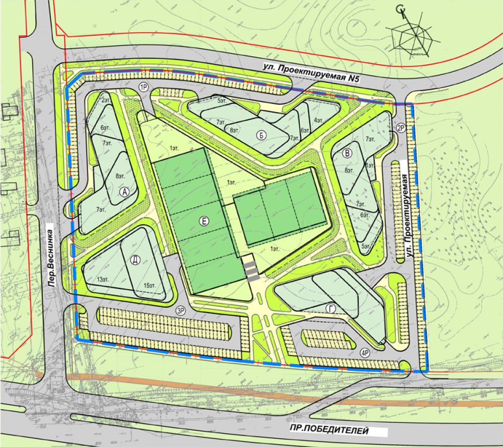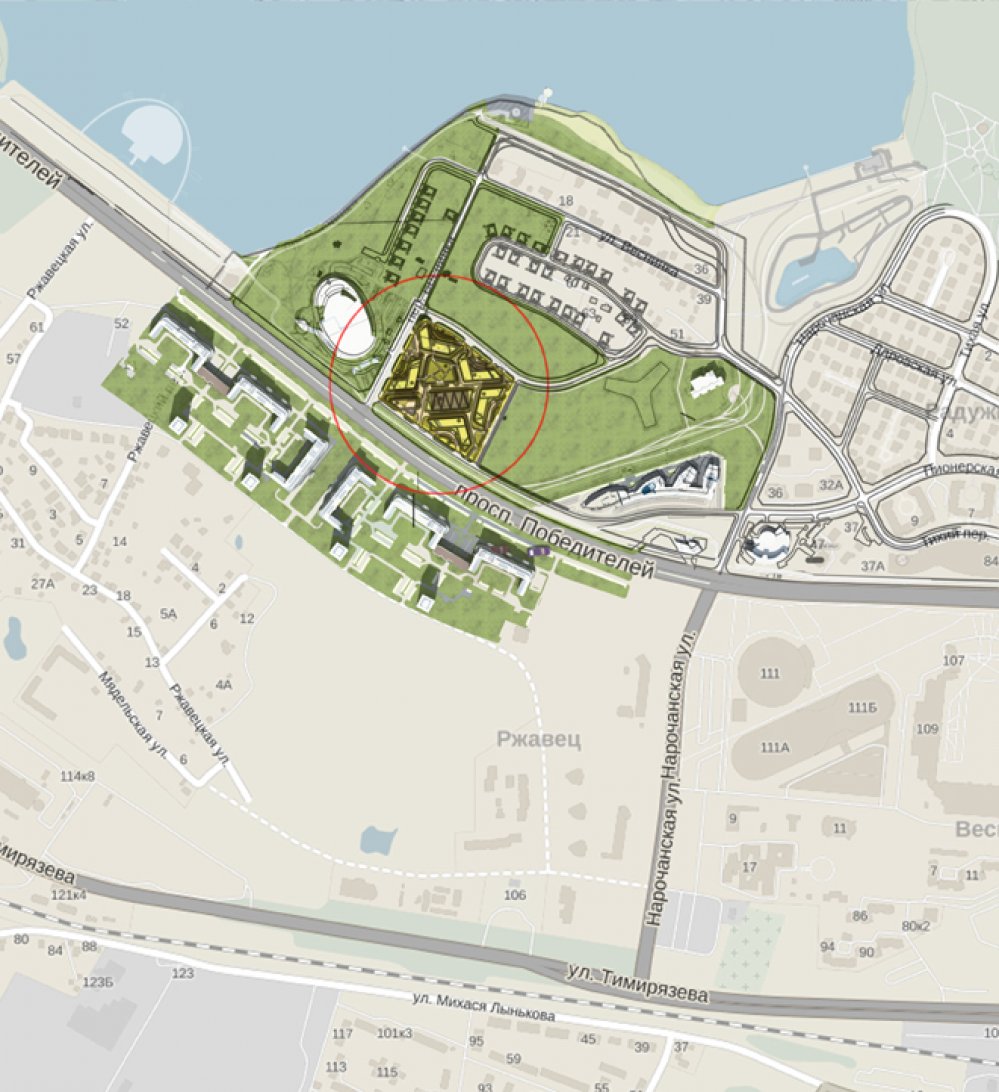 - Architectural concept of a hotel and business complex with a tennis center within the boundaries of Pobediteley Avenue and Vesninka Lane